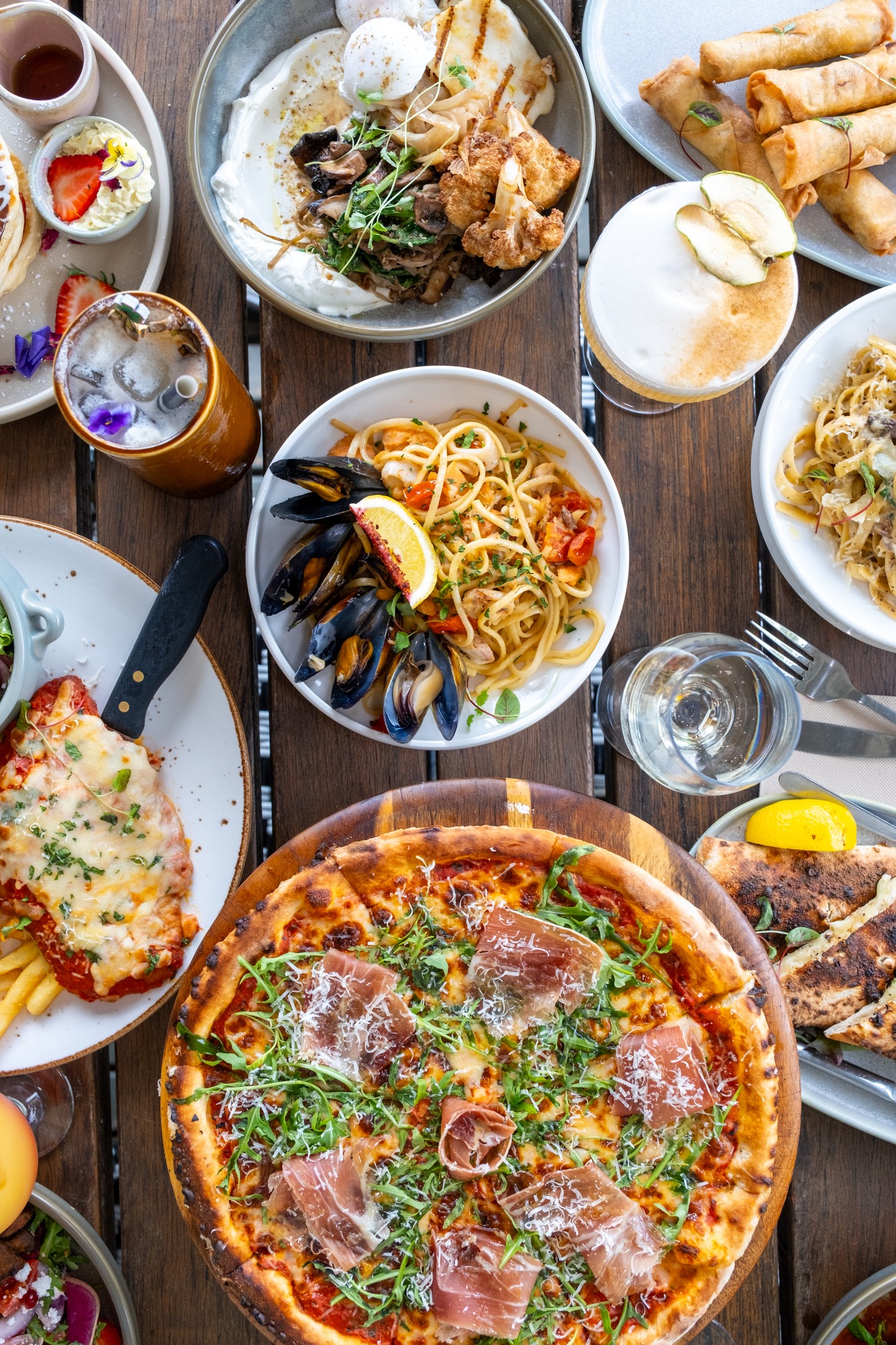 Our chef team crafts each dish with authenticity and heartโwood-fired pizzas topped with hand-pulled mozzarella, blistered crusts and local toppings, creamy pastas with house-made sauces, and vibrant mezze spreads featuring dolmades, olives, halloumi, and handmade dips, and tender lamb roasts glazed with fragrant herbs. Every dish is prepared using quality, seasonal ingredientsโand always with love..